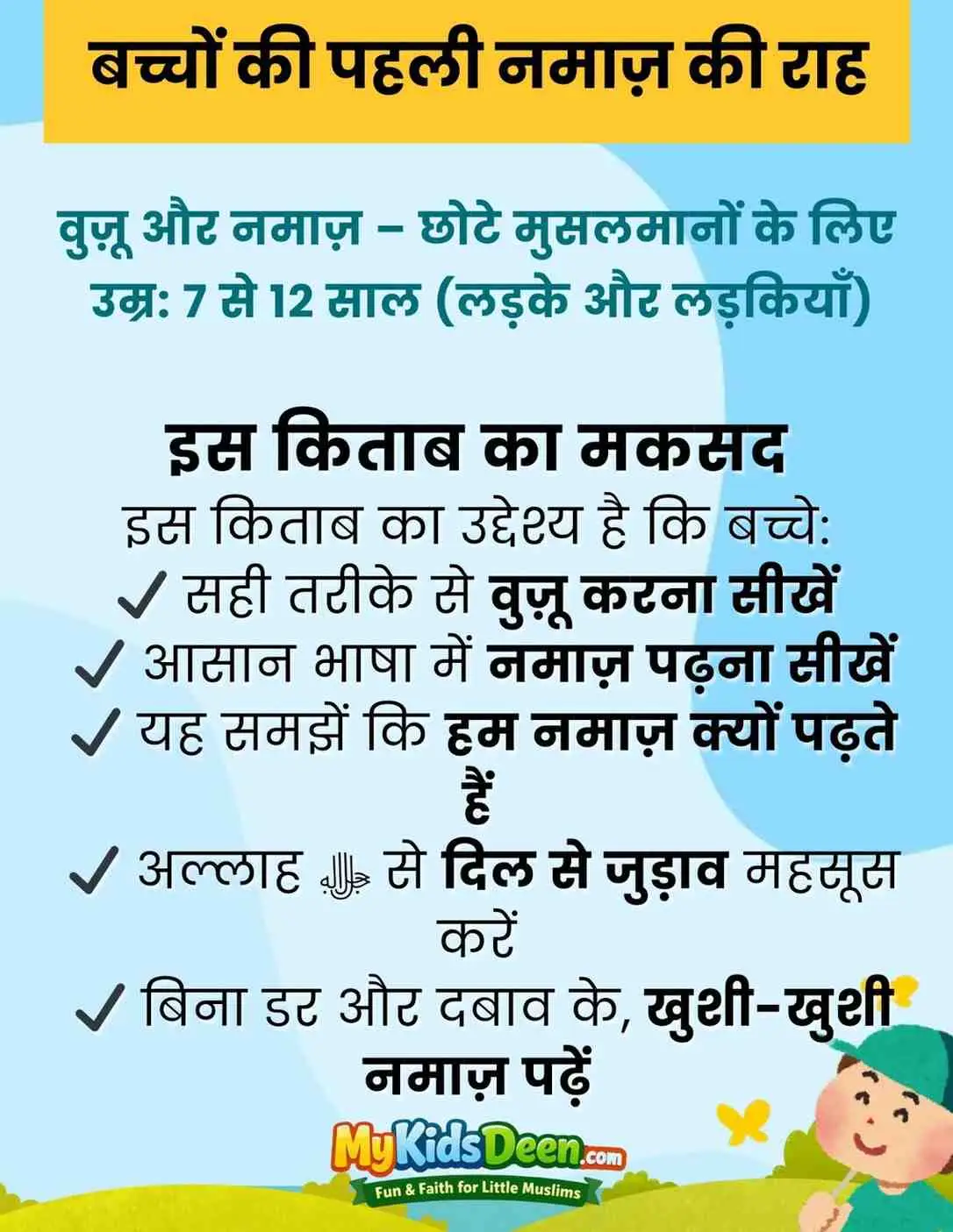Is book se bachcha sirf kaise Namaz padhein nahi, balki kyun Namaz padhein bhi samajhta hai. Storytelling, games, trackers aur family activities ke saath Namaz ko meaningful, exciting aur lifelong habit banaya jaata hai.